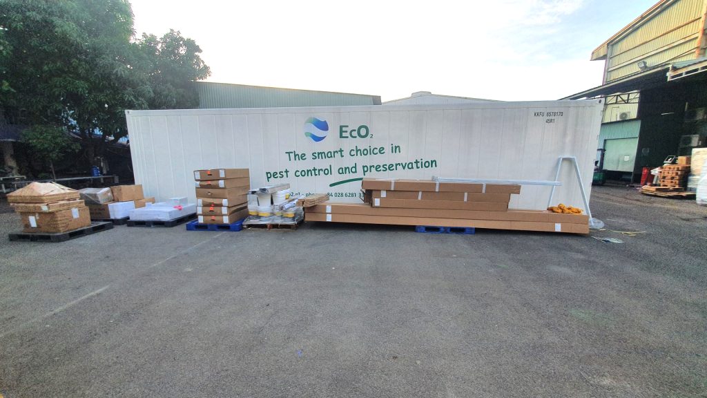 Buồng CA là phòng xử lý kín khí, cố định, an toàn và không hóa chất, dùng cho nhiều loại nông sản và sản phẩm hoàn chỉnh. Có thể xây tại cơ sở của bạn hoặc xử lý tại trung tâm được cấp phép của EcO2 ở Việt Nam và Hà Lan.